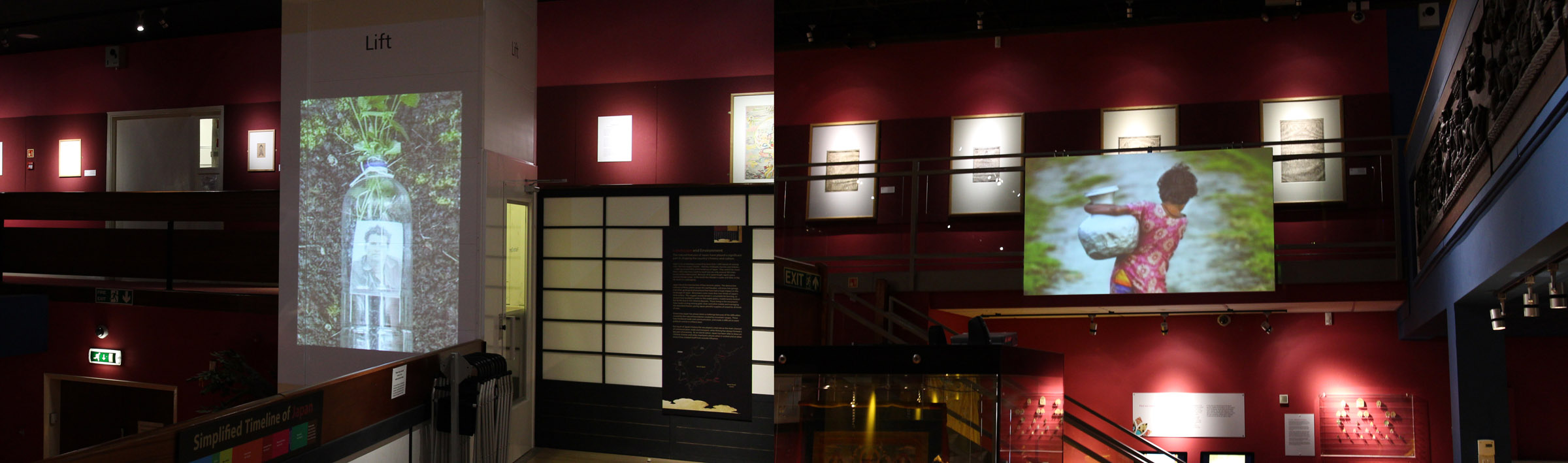 As a part of this city-wide exhibition the Oriental Museum hosts an installation comprising two projected screens at each end of the South Asia gallery (level 2) which present two artworks interwoven together. They focus on Bangladesh which is predicted to undergo levels of flooding that may submerge a quarter of its land over the next few decades or so due to climate change. The unsustainable industrial forces behind this catastrophic forecast are in sharp contrast to the incredibly advanced and sustainable ancient civilization in the Indus Valley, objects from which are displayed here in cases nearby.